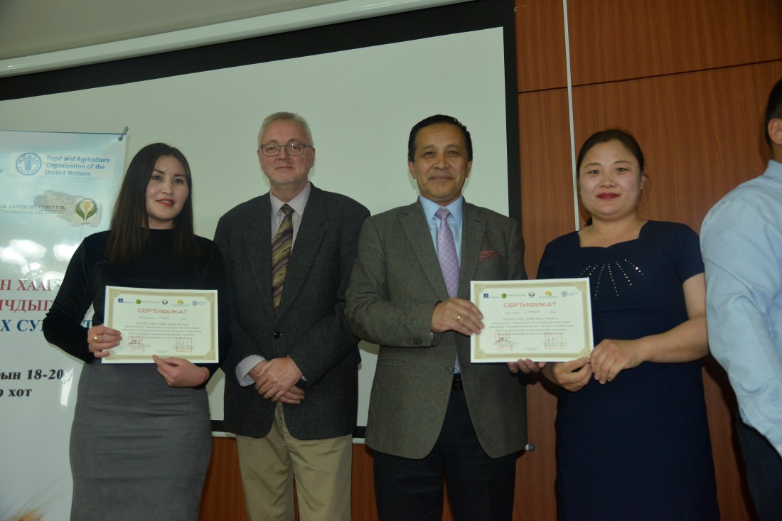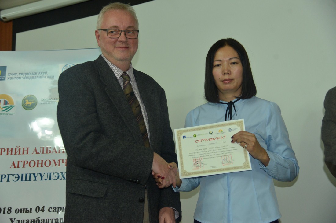 ХХААХҮЯ, НҮБ-ын ХХААБ-аас хэрэгжүүлж буй “Эрхзүйн орчин” төсөл, ХААИС-ийн АЭС, УХЭШХ, ГХЭШХ, Герман-Монголын хамтын ажиллагааны “Тогтвортой хөдөө аж ахуй” төсөл хамтран аймаг, нийслэлийн Хүнс, хөдөө аж ахуйн газрын агрономчид, сум, дүүргийн газар тариалангийн асуудал хариуцсан мэргэжилтнүүдэд зориулсан мэргэшүүлэх сургалтыг 4 дүгээр сарын 18-20-ны өдрүүдэд Улаанбаатар хотноо зохион байгууллаа.