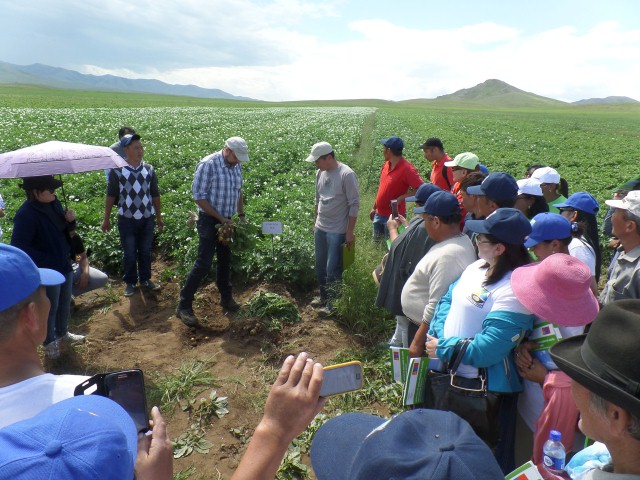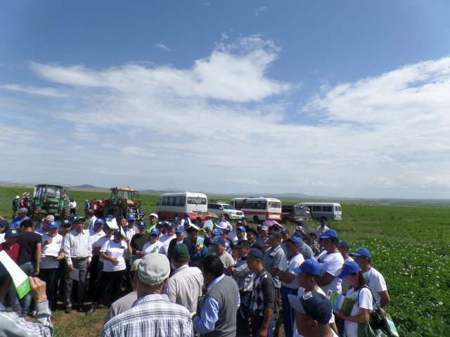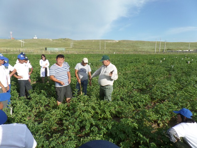 Anlässlich des 10-jährigen Jubiläums des mongolischen Kartoffelanbauverbands organisierte die Firma Elite Seed GmbH in Kooperation mit dem Ministerium für Industrie und Landwirtschaft und dem Deutsch-Mongolischen Kooperationsprojekt „Nachhaltige Landwirtschaft“ am 07. August 2014 einen Kartoffelfeldtag in Selenge Aimag, Khushaat soum. Über 150 Kartoffelanbauer und –produzenten informierten sich über aktuelle Themen und Technik zum Kartoffelanbau.