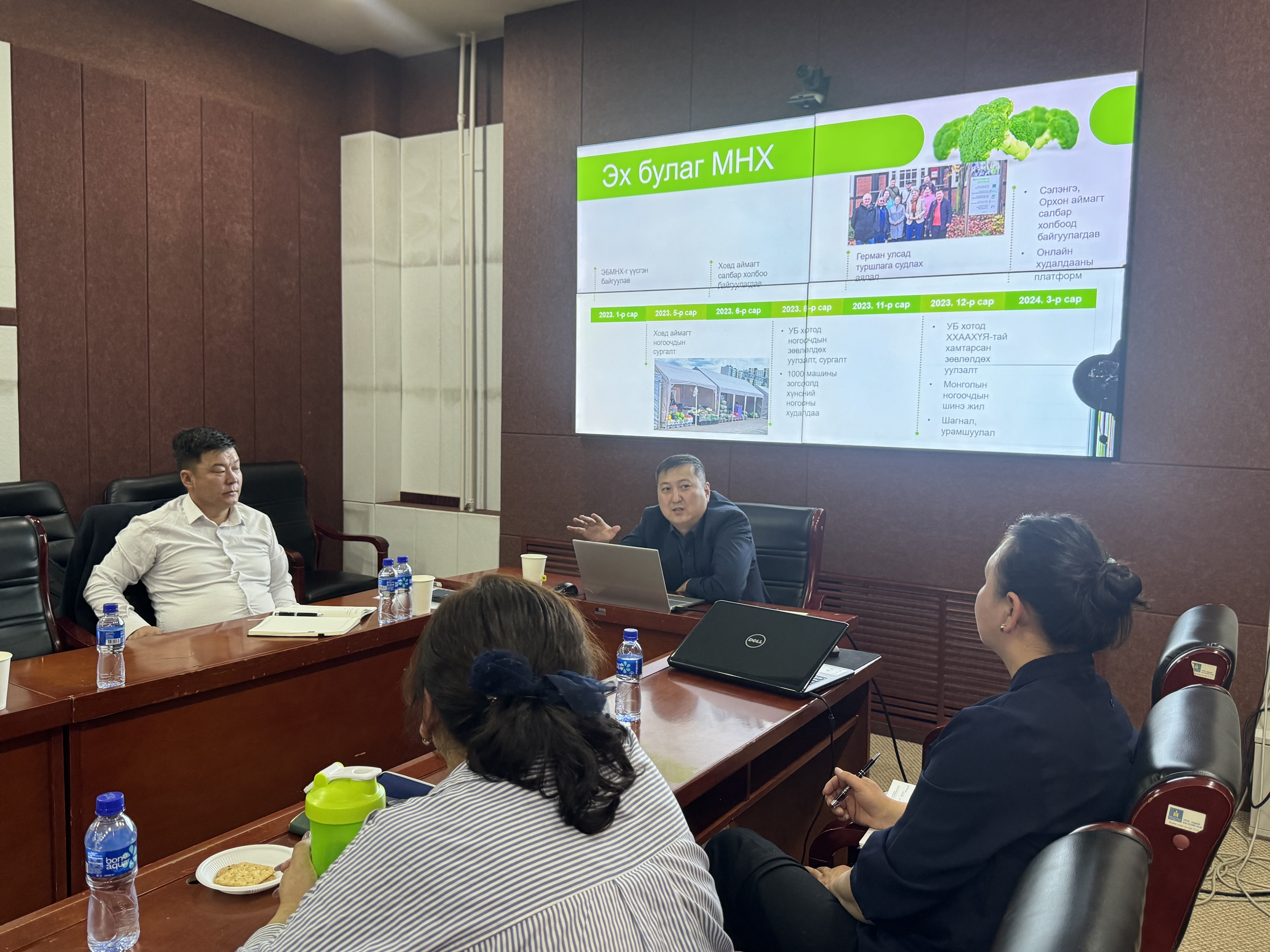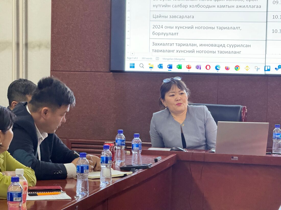 Am 2. April 2024 fand im Ministerium für Ernährung, Landwirtschaft und Leichtindustrie ein Beratungstreffen zum Thema "Management von Erzeugerorganisationen und Online-Marketing von Gemüse" statt, das im Rahmen des deutsch-mongolischen Kooperationsprojekts Nachhaltige Landwirtschaft in Zusammenarbeit mit dem Verband der mongolischen Gemüseerzeuger "Eh bulag" organisiert wurde. Das Hauptziel dieser Zusammenkunft war es, die Kompetenzen der Führung der Gemüseanbauverbände in den Selenge- und Orkhon-Aimag zu stärken, um die Wertschöpfung bei der Gemüseproduktion zu erhöhen und den Absatz der Mitglieder zu verbessern. Das Treffen wurde von Vertretern des Ministeriums für Ernährung, Landwirtschaft und Leichtindustrie, des Verbands mongolischen Gemüseerzeuger "Eh bulag", der Selenge- und Orkhon-Aimag, des Forschungs- und Entwicklungszentrums (RDC), des Institutes für Pflanzen und Agrarwissenschaften, sowie Agronomen und Vertretern des landwirtschaftlichen Privatsektors besucht.
