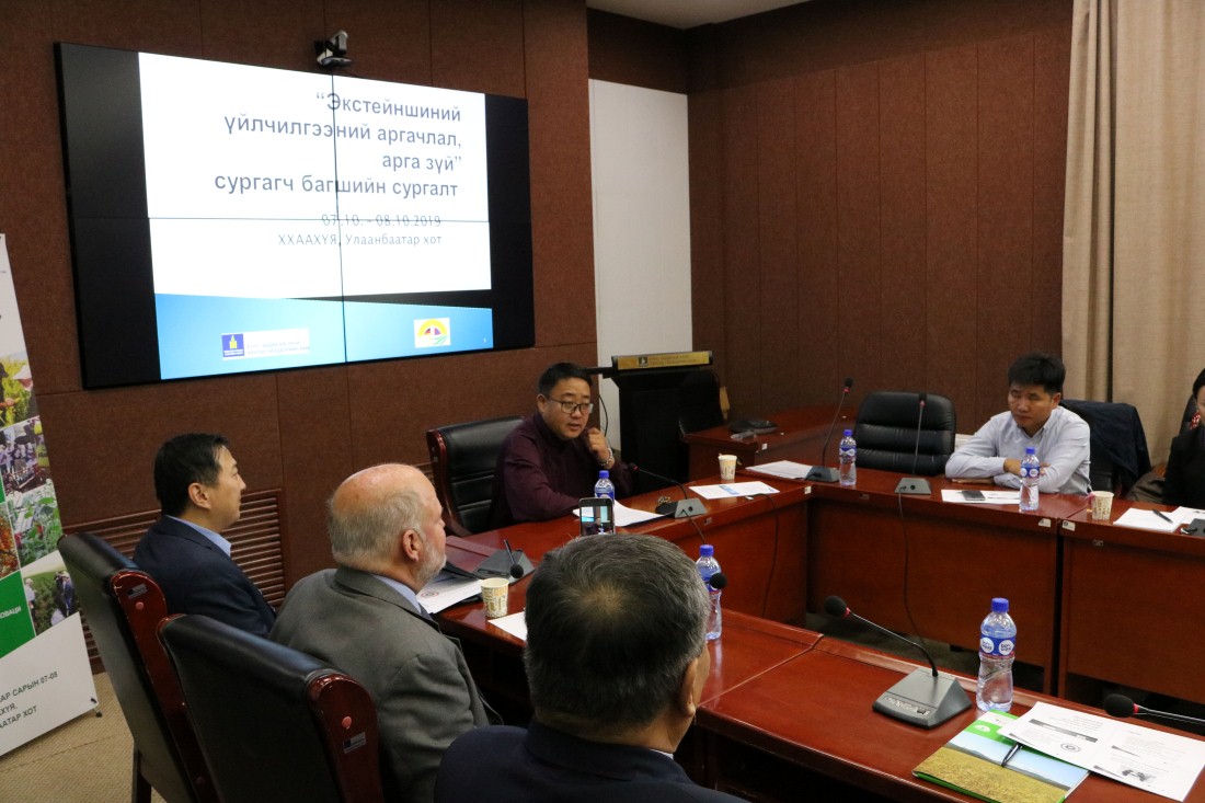 Im Rahmen ihrer Zusammenarbeit organisierten das Deutsch-Mongolische Kooperationsprojekt „Nachhaltige Landwirtschaft“ und das National Agricultural Extension Centre gemeinsam eine als „Training of Trainers“ konzipierte Schulung zum Thema „Ansätze und Methoden landwirtschaftlicher Beratung“ vom 7.-8. Oktober 2019 im Ministerium für Ernährung, Landwirtschaft und Leichtindustrie.