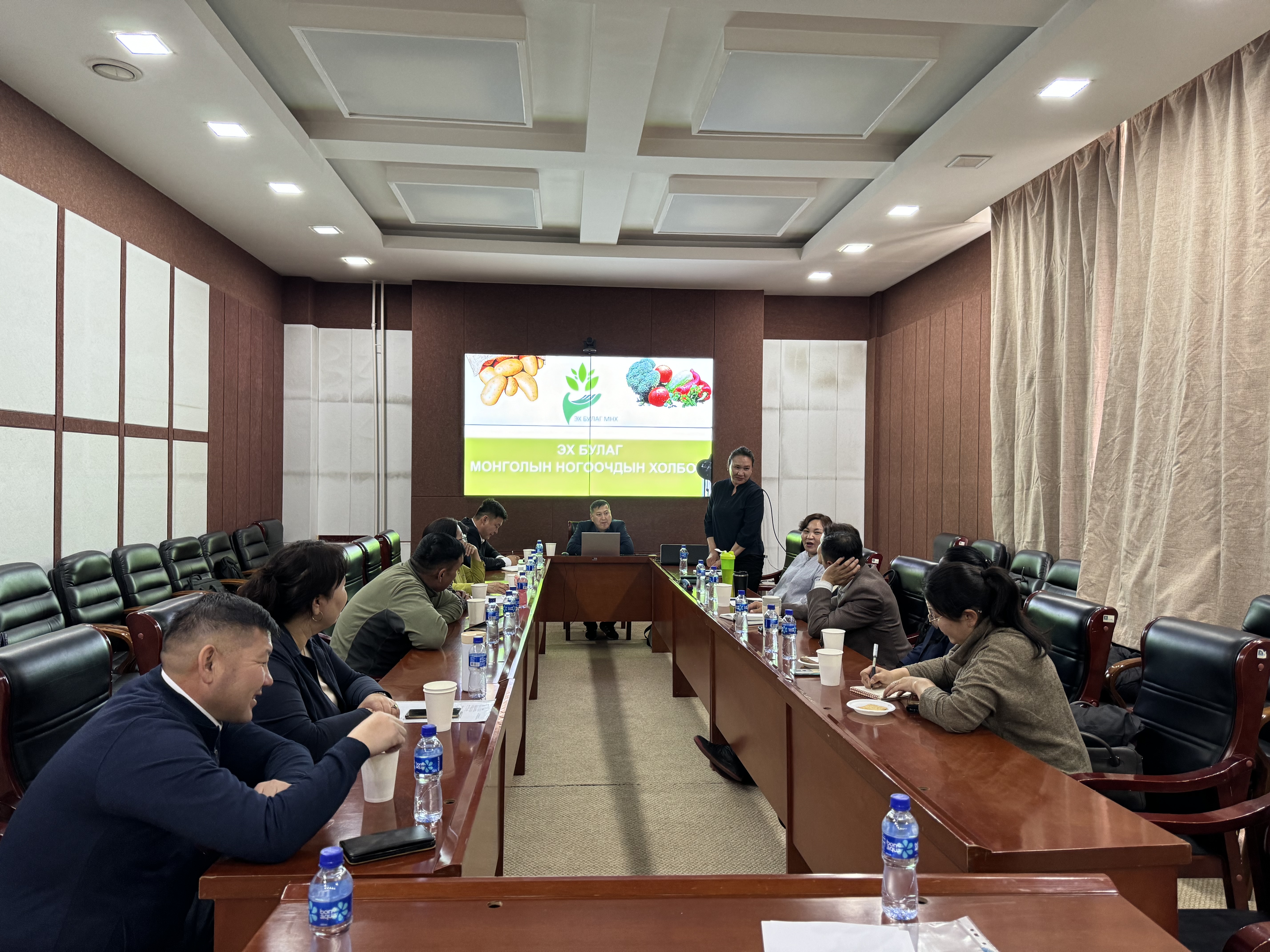 Хүнс, хөдөө аж ахуй, хөнгөн үйлдвэрийн яам, Герман-Монголын хамтын ажиллагааны “Тогтвортой хөдөө аж ахуй” төсөл, “Эх булаг” Монголын ногоочдын холбоотой хамтран 2024 оны 4 сарын 2-ны өдөр “Ногоочдын холбооны менежмент, хүнсний ногооны цахим худалдаа” сэдэвт хэлэлцүүлгийг ХХААХҮЯ-ны хурлын танхимд зохион байгууллаа.