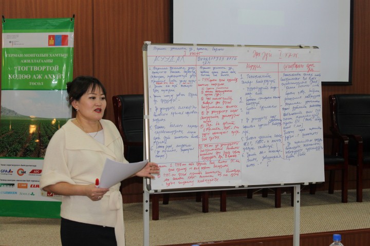 Герман-Монголын хамтын ажиллагааны “Тогтвортой Хөдөө Аж Ахуй” төслөөс “Таримал ургамлын үр, сортын бодлого, эрх зүй, менежмент“ сэдэвт зөвлөгөөнийг ҮХААЯ-ны ГТБХЗГ-тай хамтран энэ оны 11 сарын 19-20 өдрүүдэд амжилттай зохион байгууллаа. Тус зөвөлгөөнд нийт 10 гаруй аймгаас ҮХААГ-ын мэргэжилтэн, ургамал газар тариалангийн чиглэлээр үйл ажиллагаа явуулдаг эрдэм шинжилгээний байгууллагуудын төлөөлөл мөн үр үржүүлэгч аж ахуйн нэгжүүдийн төлөөлөл зэрэг нийт 50 гаруй мэргэжилтнүүд оролцлоо. Мөн ХБНГУ-ын Сортын агентлагийн газрын дарга ноён Др. Фройденштайн, Германы Ургамлын Селекцичидийн Холбооны төлөөлөгч ноён Рюкер нар оролцож, ХБНГУ төдийгүй Европын Холбооны бусад улс орнуудын үрийн аж ахуйн салбарын тэргүүн туршлагыг салбарын мэргэжилтнүүдэд танилцууллаа.